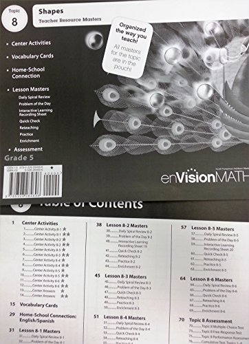 See all customer reviews...EnVision Math, Grade 5, Teacher Resource Masters, Topic 8 Shapes (Scott Foresman en Vision Math)From Scott Foresman/Addison Wesley PDF
